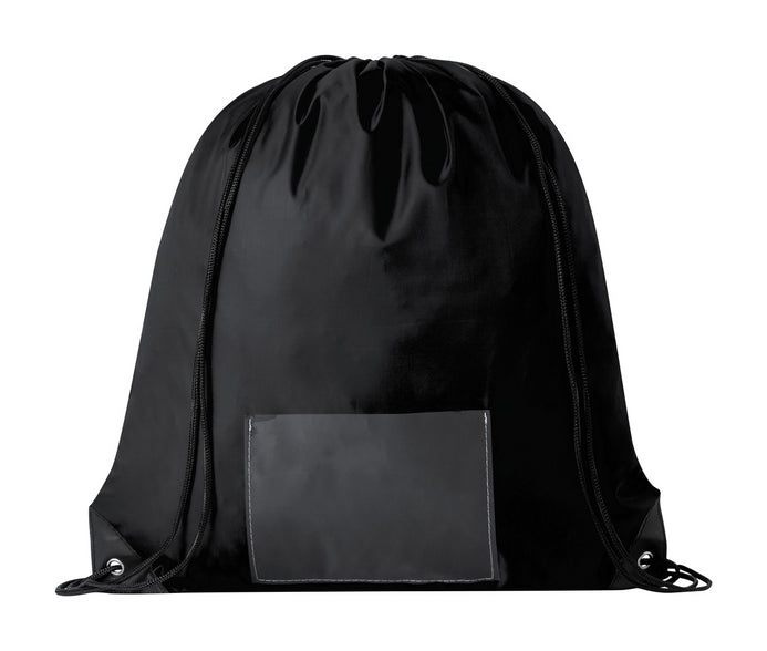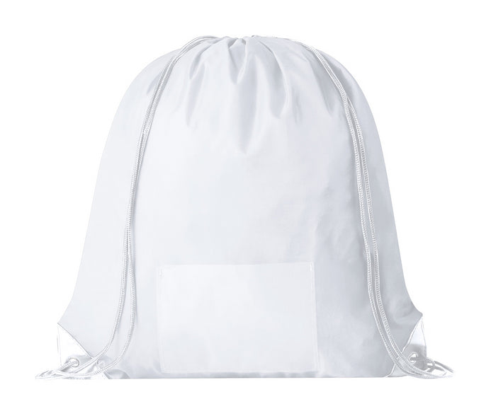210D polyester drawstring bag with transparent pocket for race number. Race number is not included.