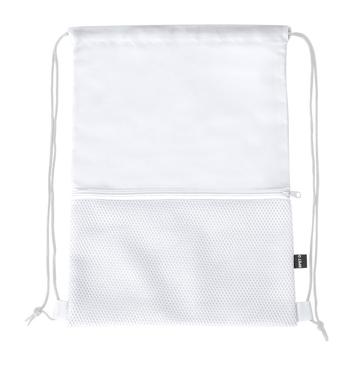 | Descriere | RPET drawstring bag with zipped mesh front pocket. 210D RPET polyester with distinctive RPET label. |