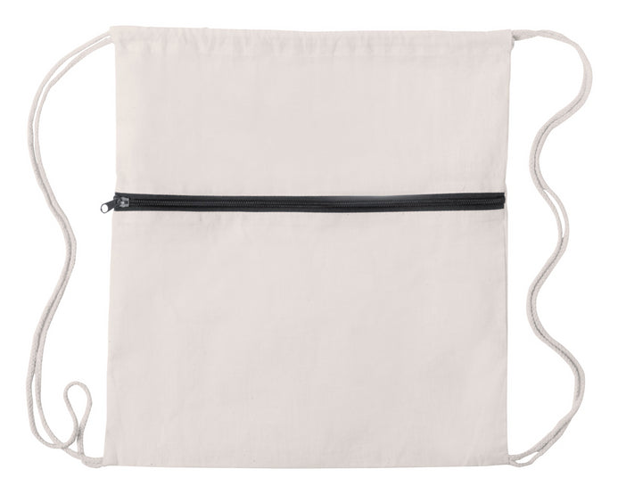 Rucsac cu șnur, din bumbac, cu buzunar frontal cu fermoar colorat, 100 g/m².