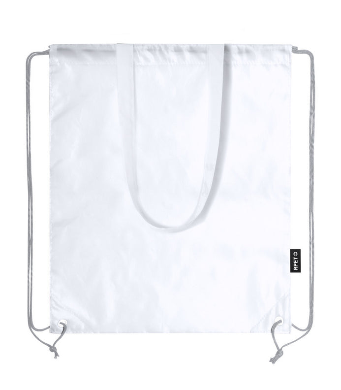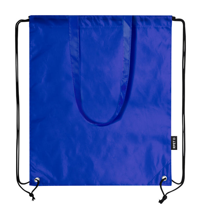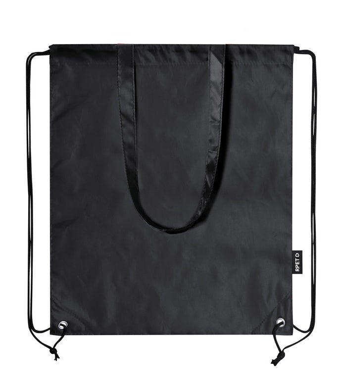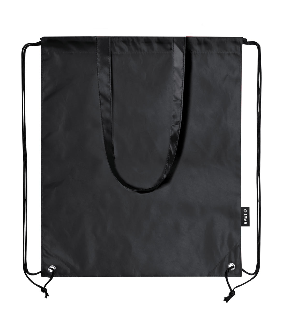 Rucsac din poliester RPET, cu șnur cu mâner lung. Poate fi folosit și ca sacoșă de cumpărături. Cu etichetă distinctivă RPET.