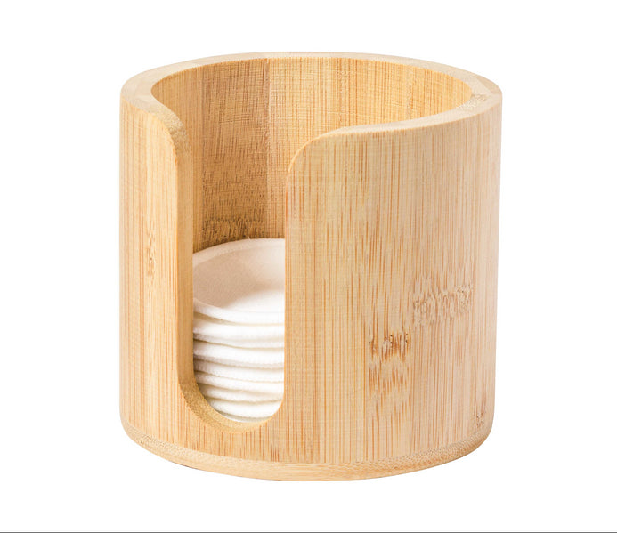 10 dischete demachiante din bumbac reutilizabile în cutie distribuitoare din bambus. Inclusiv husă din plasă cu șnur pentru spălare convenabilă.