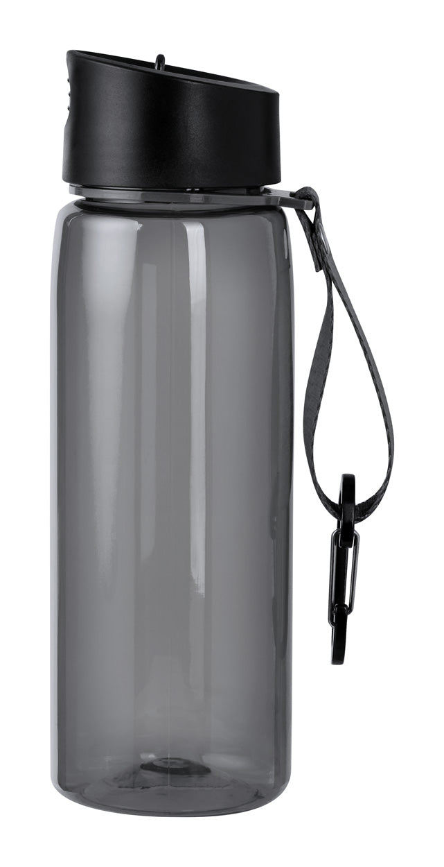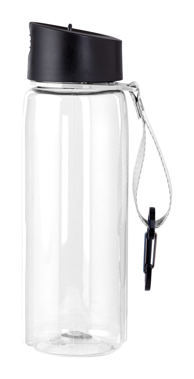 Sticlă sport, din RPET, transparentă, cu curea de transport și carabină metalică, 800 ml.