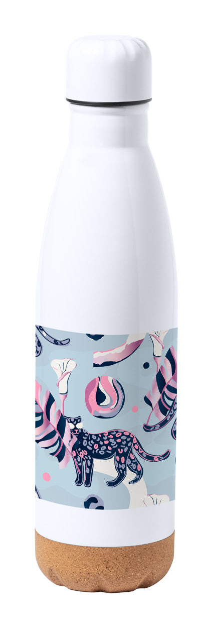 Sticlă sport, din oțel inoxidabil, pentru imprimare prin sublimare, cu baza de plută naturală, 750 ml.