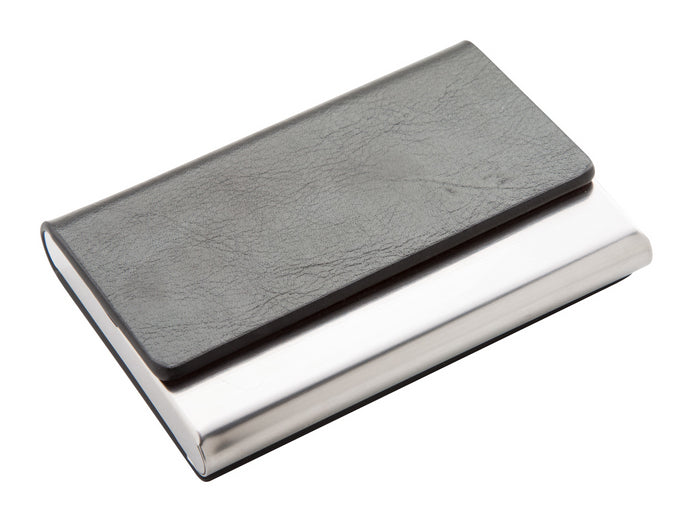 | Descriere | Suport pentru cărți de vizită, din metal și înlocuitor piele. În cutie neagră de cadou. |