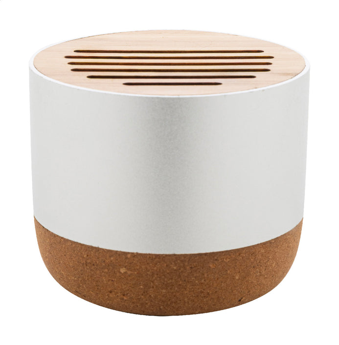 Boxă wireless, cu carcasă din aluminiu reciclat, plasă de bambus și bază din plută naturală. Cu baterie reîncărcabilă (400 mAh). Include cablu de încărcare USB.