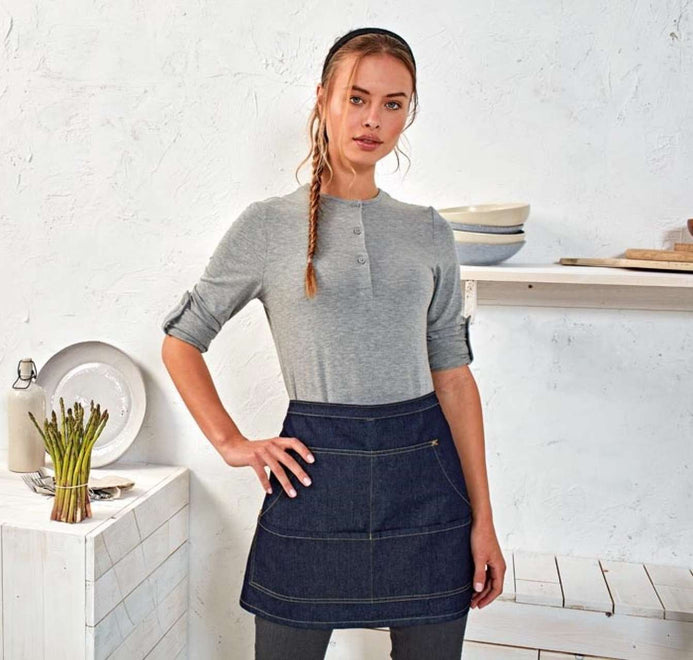 JEANS STITCH DENIM BIB APRON | PR126 JEANS STITCH DENIM WAIST APRON | PR125 FAIRTRADE SUSTAINABLE WAIST APRON | PR114