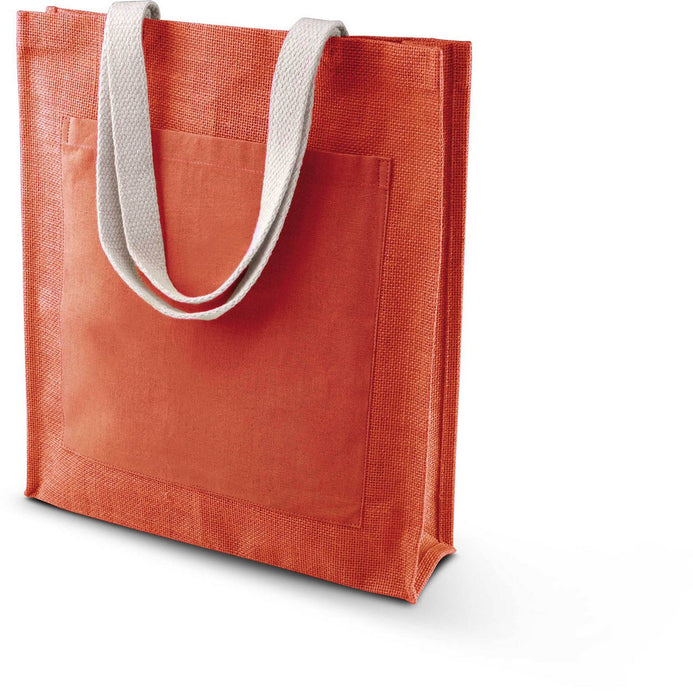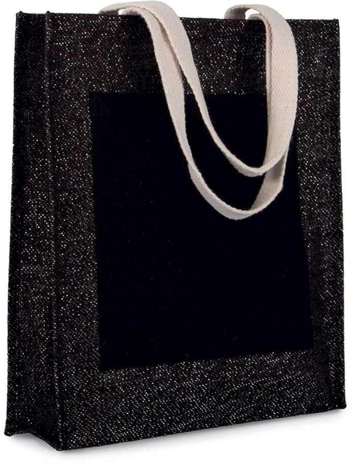 - Geantă de cumpărături din iută cu mânere din bumbac, buzunar în față din bumbac