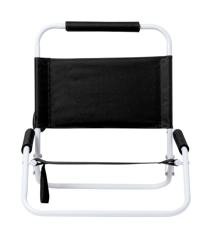| Descriere | Scaun de plajă pliabil, cu cadru metalic, cotiere căptușite cu spumă și mâner de transport, poliester 600D. |