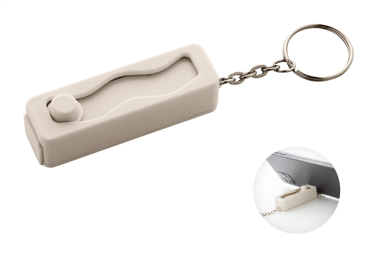 Breloc antistres, din ABS reciclat, cu suport integrat pentru mobil și inel metalic.