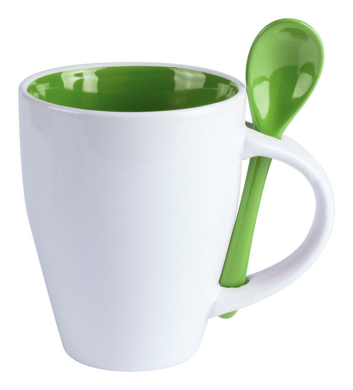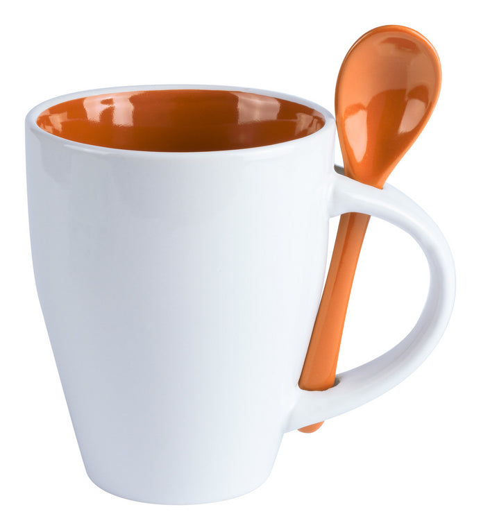 | Descriere | Cană ceramică cu interior colorat și exterior alb, cu linguriță, 350 ml. |