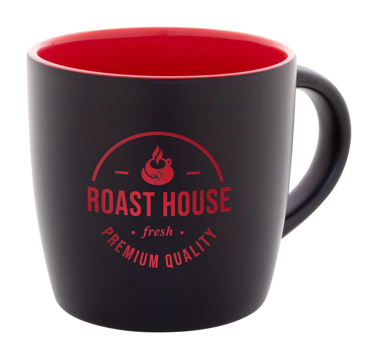 Cană din ceramică de culoare neagră, cu interior colorat, 300 ml. Cu un strat special pentru gravare, logo-ul gravat se potrivește cu culoarea interioară. În cutie de hârtie kraft.