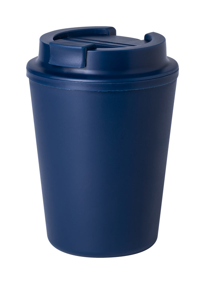 Descriere Cană termică, din plastic PP reciclat, cu perete dublu, cu capac de băut, 300 ml.
