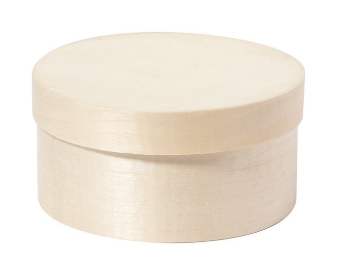 Cutie cadou de formă rotundă, cu capac din lemn.