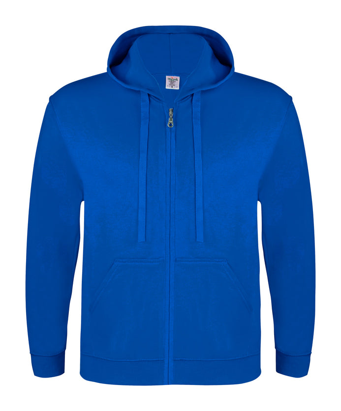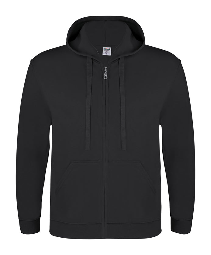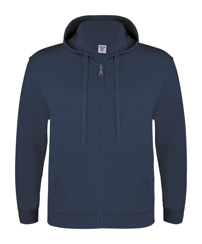 Adult hooded and zipped sweatshirt with 2 front pockets, in 50% cotton and 50% polyester. 280 g/m². Keya brand product.