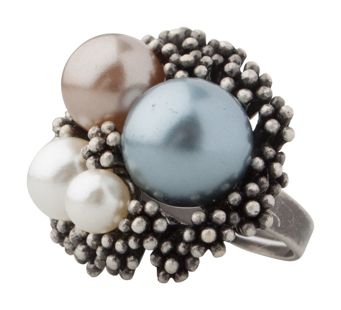 Inel din metal cu perle. Mărime reglabilă. În săculeţ de cadou. Marca Antonio Miro.