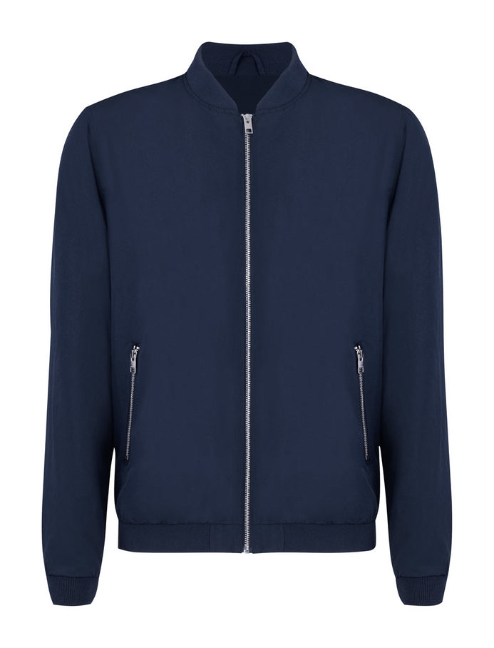 Descriere Jachetă bomber din poliester, rezistentă la vânt și la apă, cu fermoar și buzunare laterale