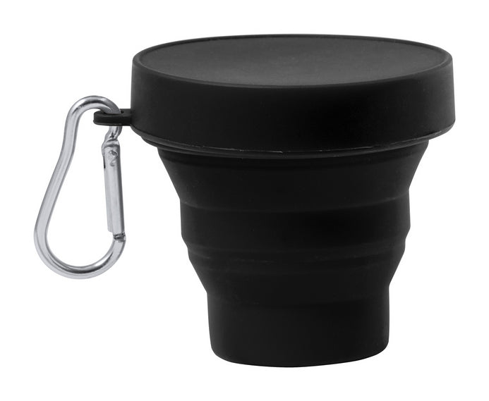Cană pliabilă, din silicon, cu capac și carabină metalică, 160 ml.