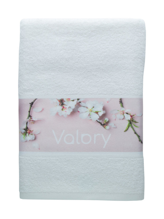 Prosop flauşat cu bordură din poliester pentru imprimare prin sublimare. 100% bumbac, 400 g/m². Preţul include imprimarea prin sublimare.