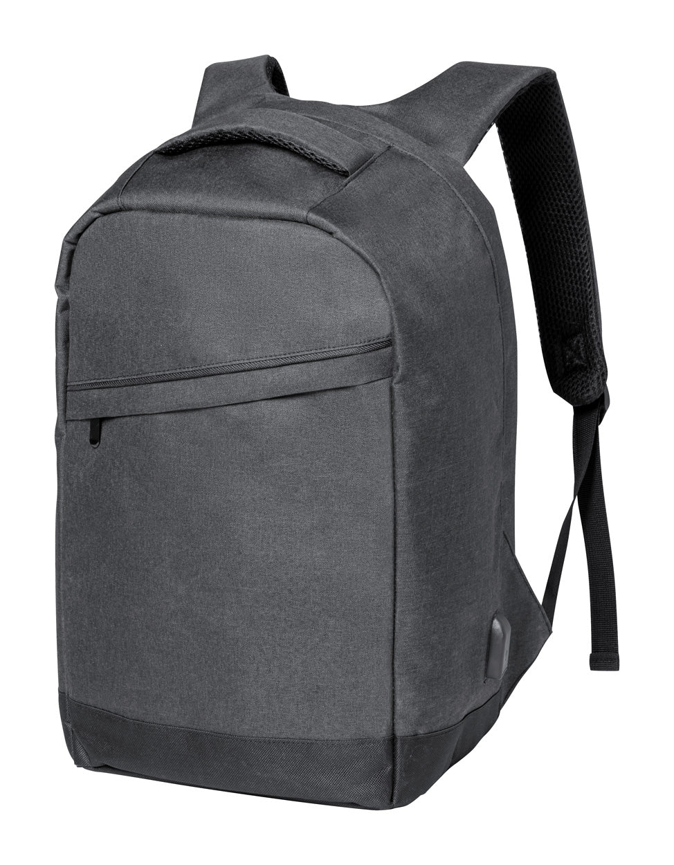 Rucsac rezistent la apă, antifurt, cu mai multe compartimente cu fermoar, compartiment căptușit pentru laptop (15") și tabletă (10"), curea pentru cărucior, spate căptușit și curea de umăr. Cu conexiune USB încorporată pentru power banks. Poliester 600D.