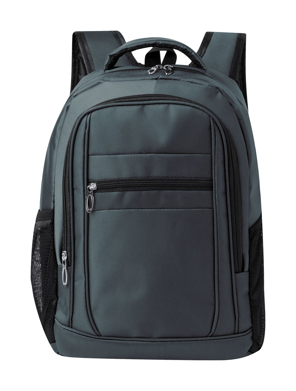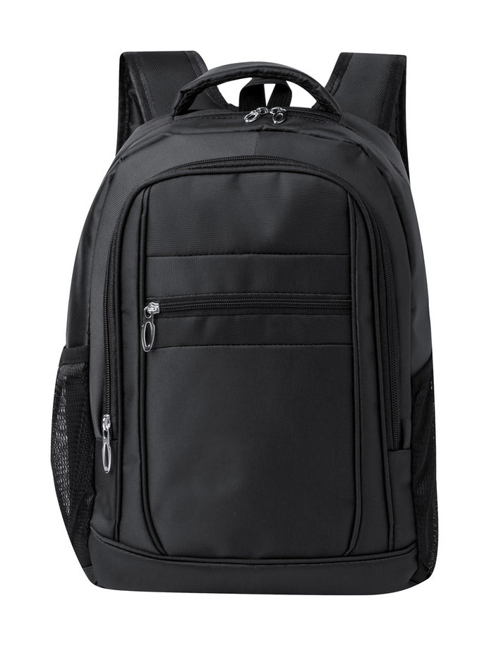 | Descriere | Rucsac din nailon, cu compartimente cu fermoar, buzunare laterale, compartiment căptușit pentru laptop (15") și tabletă (10"), spate și bretele căptușite. Nailon 600D. |