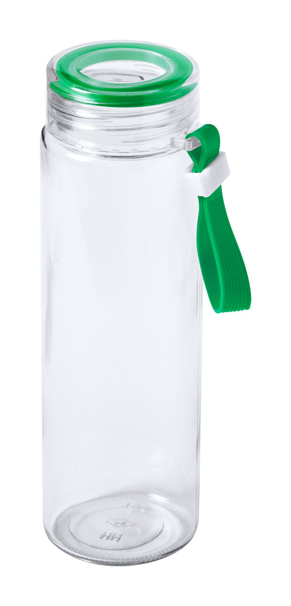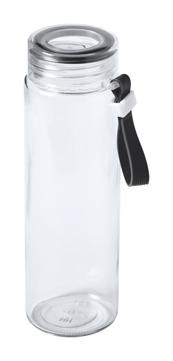 Szklana butelka sportowa z paskiem na pokrywce. 420 ml. Nu este potrivit pentru băuturi carbogazoase.