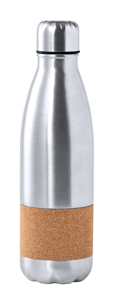 Sticlă sport, din oțel inoxidabil, cu incrustație de plută naturală, 750 ml. Nu este potrivit pentru băuturi carbogazoase.