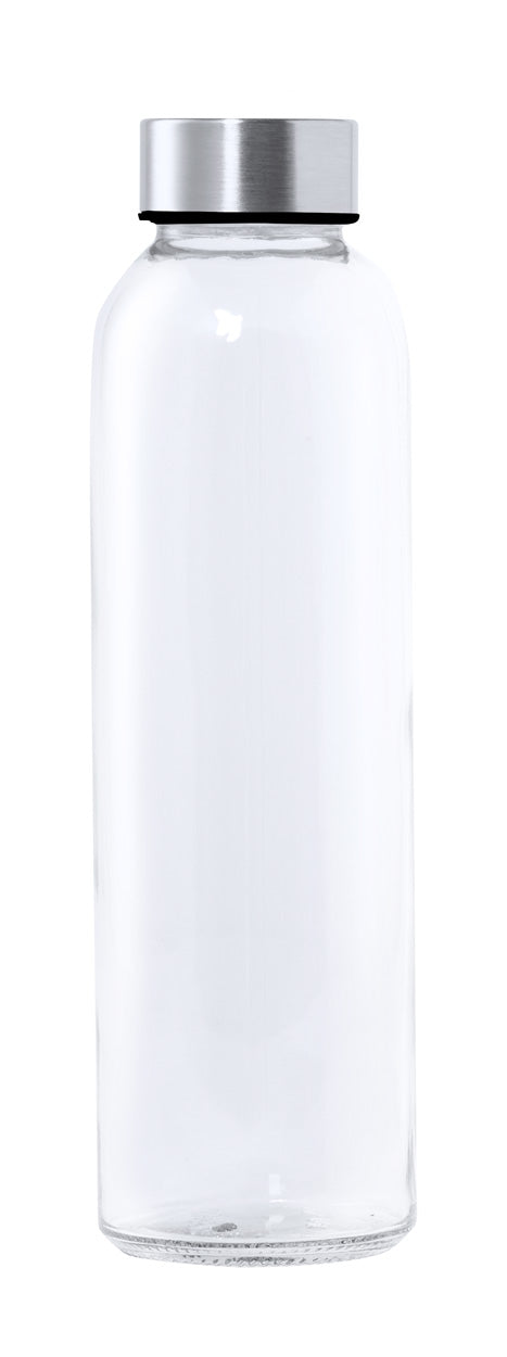 Sticlă sport, din sticlă, cu capac din oțel inoxidabil, 500 ml. Nu este potrivit pentru băuturi carbogazoase.