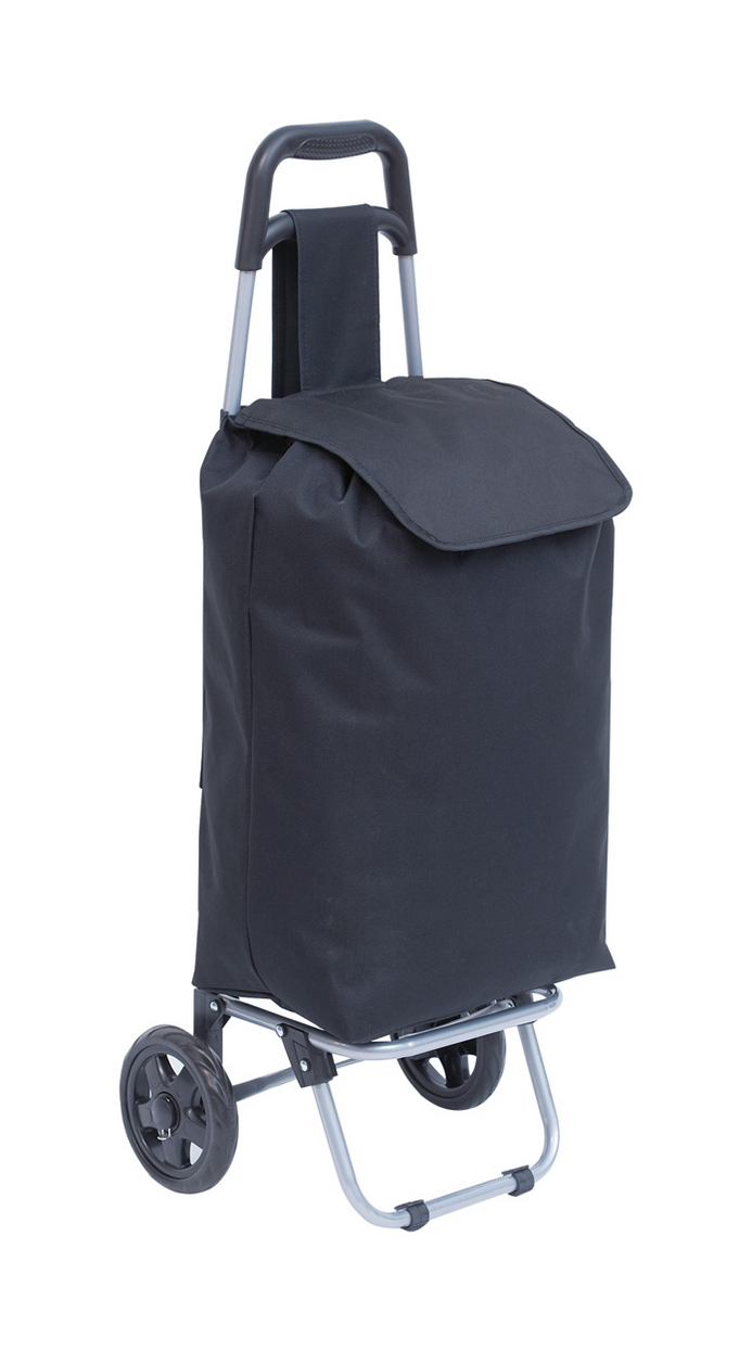 Troller cumparaturi cu inchidere cu velcro.Cadrul este metalic, geanta este realizata din Poliester 600D.
