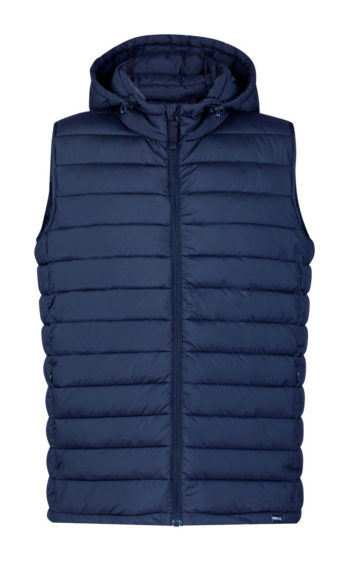 Vestă rezistentă la vânt și la apă, cu căptușeală interioară din poliester 100% RPET. Cu husă din poliester RPET.